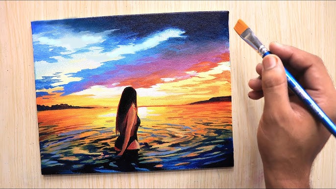 Acrylic Painting Of Beautiful Sunset Landscape Step By Step Youtube